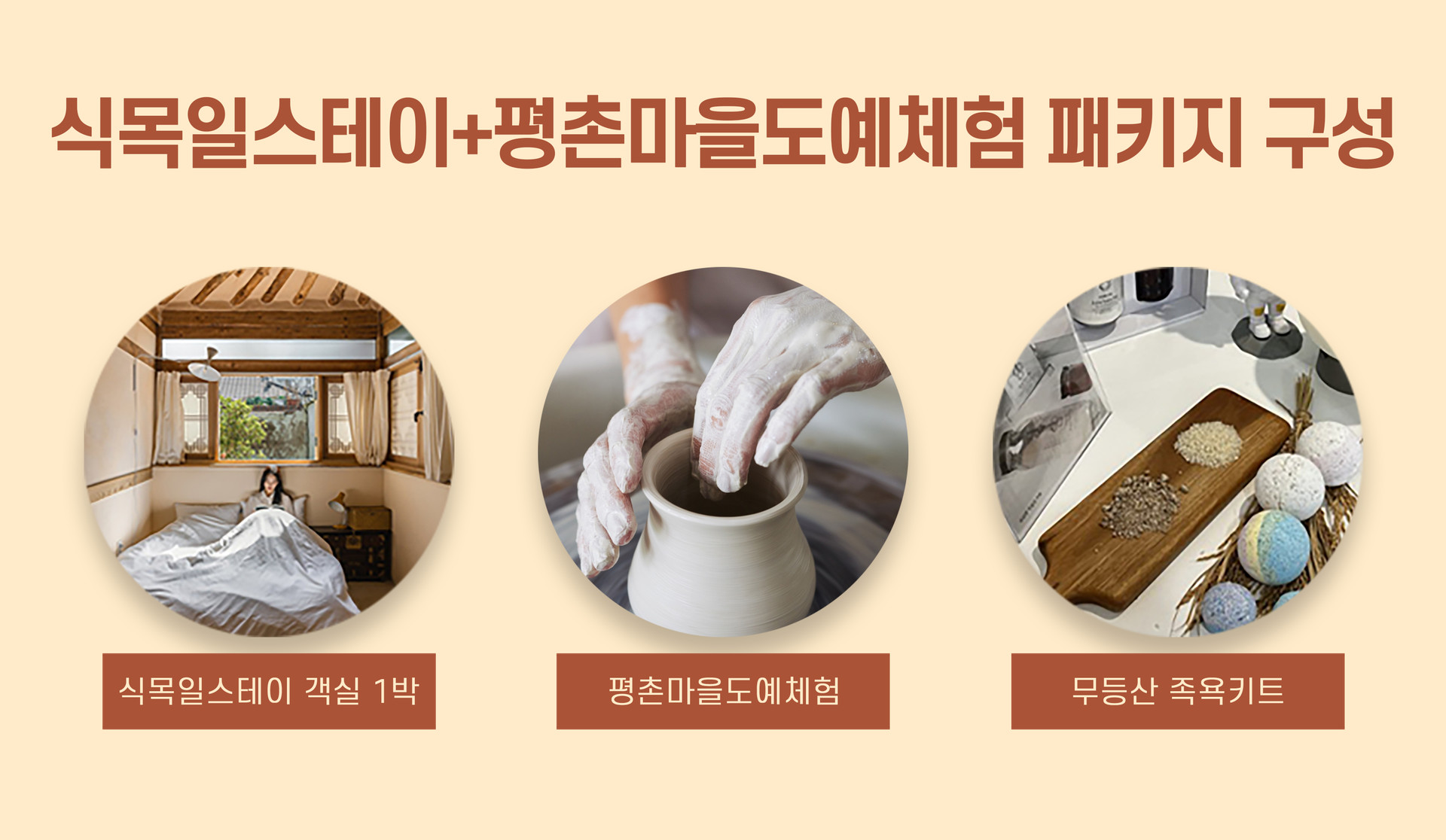 지올스테이+평촌마을도예체험체험을 포함한 2인 패키지입니다.
